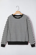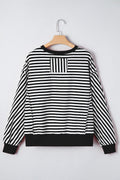 Black Stripe Exposed Seam Drop Shoulder Casual Pullover Top