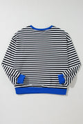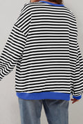 Sale Black Stripe Oversized Contrast Trim Pullover Sweatshirt