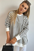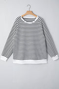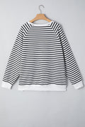Black Stripe Raglan Sleeve Side Slits Loose Sweatshirt