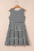 Black Stripe U Neck Sleeveless Loose Fit Mini Dress