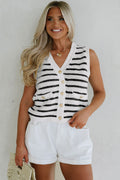 Black Stripe V Neck Gold Buttons Elegant Sweater Vest