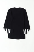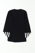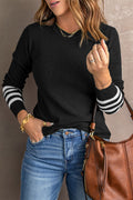 Black Striped Sleeve Plain Knit Sweater