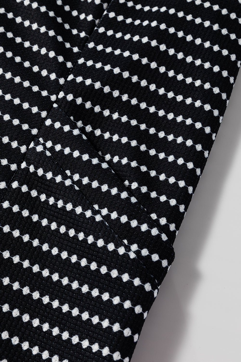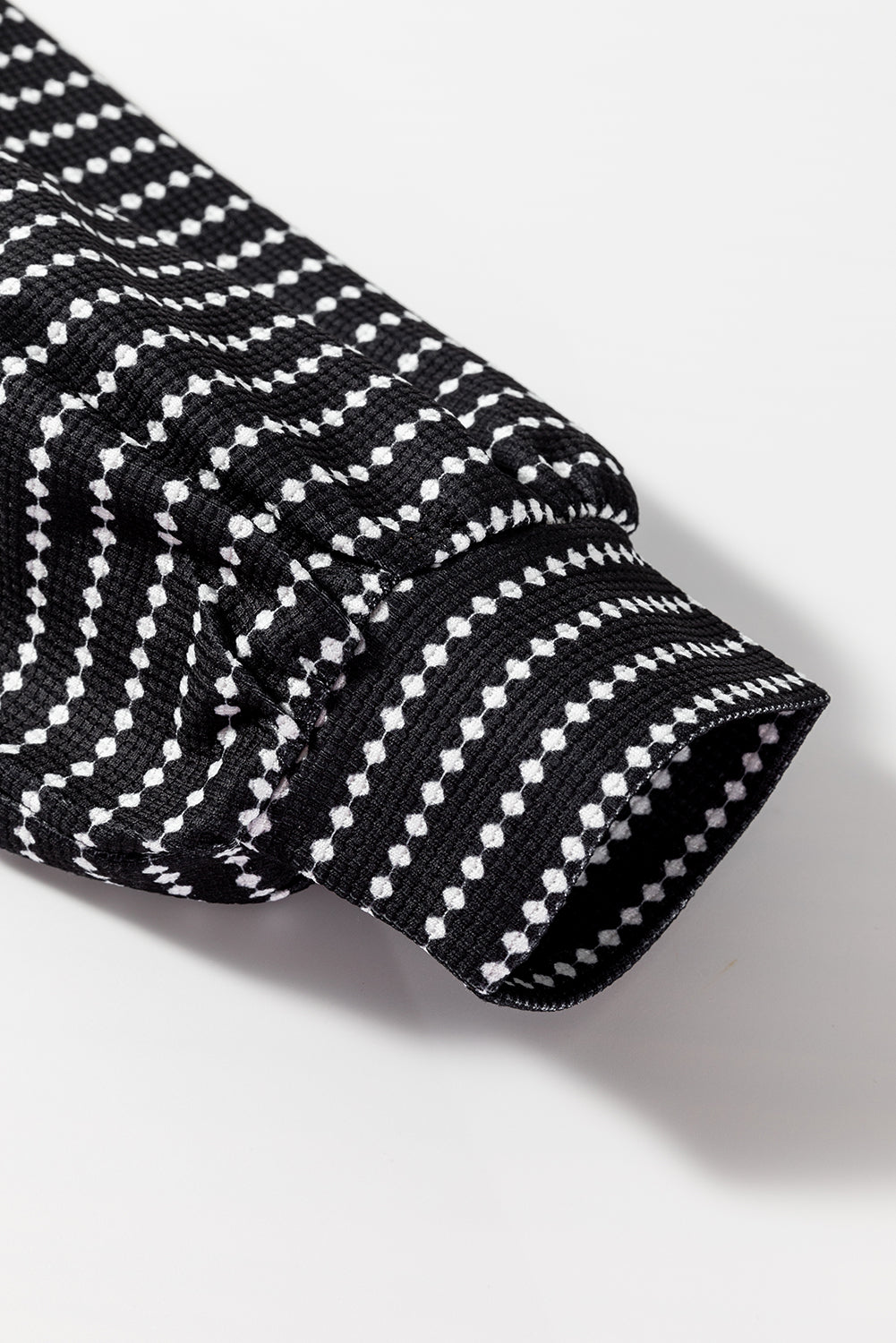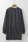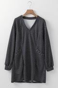 Sale Black Striped V Neck Long Puff Sleeve Shift Dress