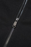 Black Textured Ruffled Sleeve Zipped Top and Wide Leg Pants Set