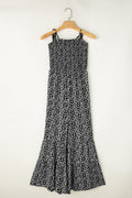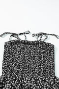 Sale Black Thin Straps Smocked Bodice Wide Leg Floral Jumpsuit