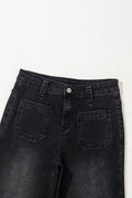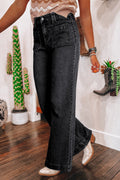 Carbon Grey Mineral Wash Button Fly Waist Wide Leg Jeans