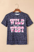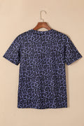 Sale Apricot Leopard Print Round Neck Casual T Shirt