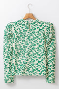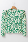 Sale Blackish Green Leopard Print Mock Neck Puff Sleeve Top