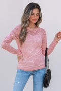 Sale Casual Contrast Lace Round Neck Long Sleeve T-Shirt