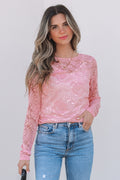 Sale Blossom Floral Lace Sheer Long Sleeve Top