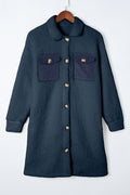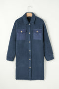Sale Blue Contrast Flap Pocket Single Breasted Teddy Coat