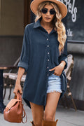 Blue Corduroy Shirt Style Full Button Long Sleeve Shift Mini Dress