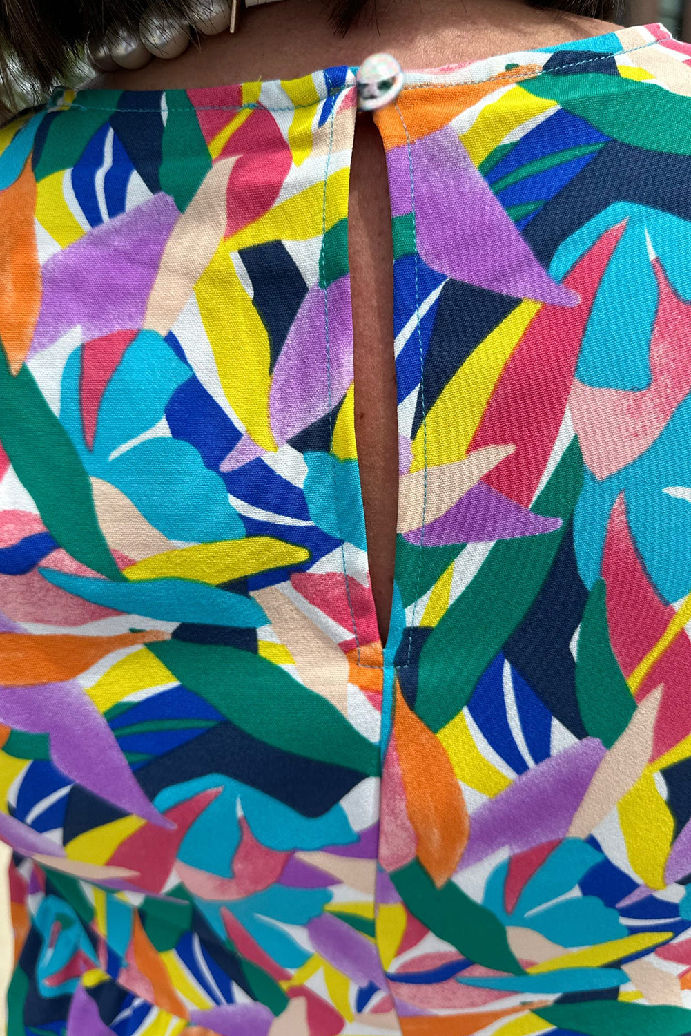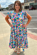 - Enjoy the fun color combo and flattering fit of this dress!It has a lightweight material, colorful tropical print, and loose fit.Features a round neckline, ruffle sleeves, and high-waist tiered design.Made of soft lightweight fabric, exclusively for big size women.