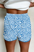 Blue Leopard Elastic Waist Lace up Contrast Trim Casual Shorts