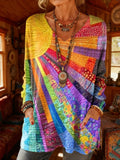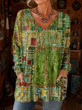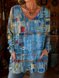 Sale Button Geometric Print Long Sleeve T Shirt