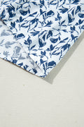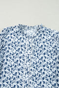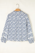 Blue Printed Lace Detail Floral Puff Sleeve Fall Shirt