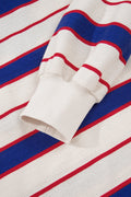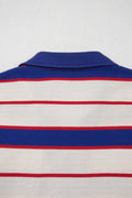 Sale Blue Stripe Color Block Polo Pullover Sweatshirt