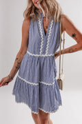 Blue Stripe Sleeveless Notched V Neck Contrast Ric Rac Mini Dress