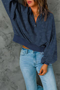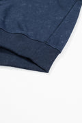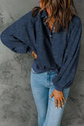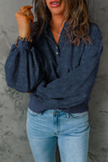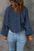 Blue Washed Snap Buttons Lantern Sleeve Pullover Sweatshirt