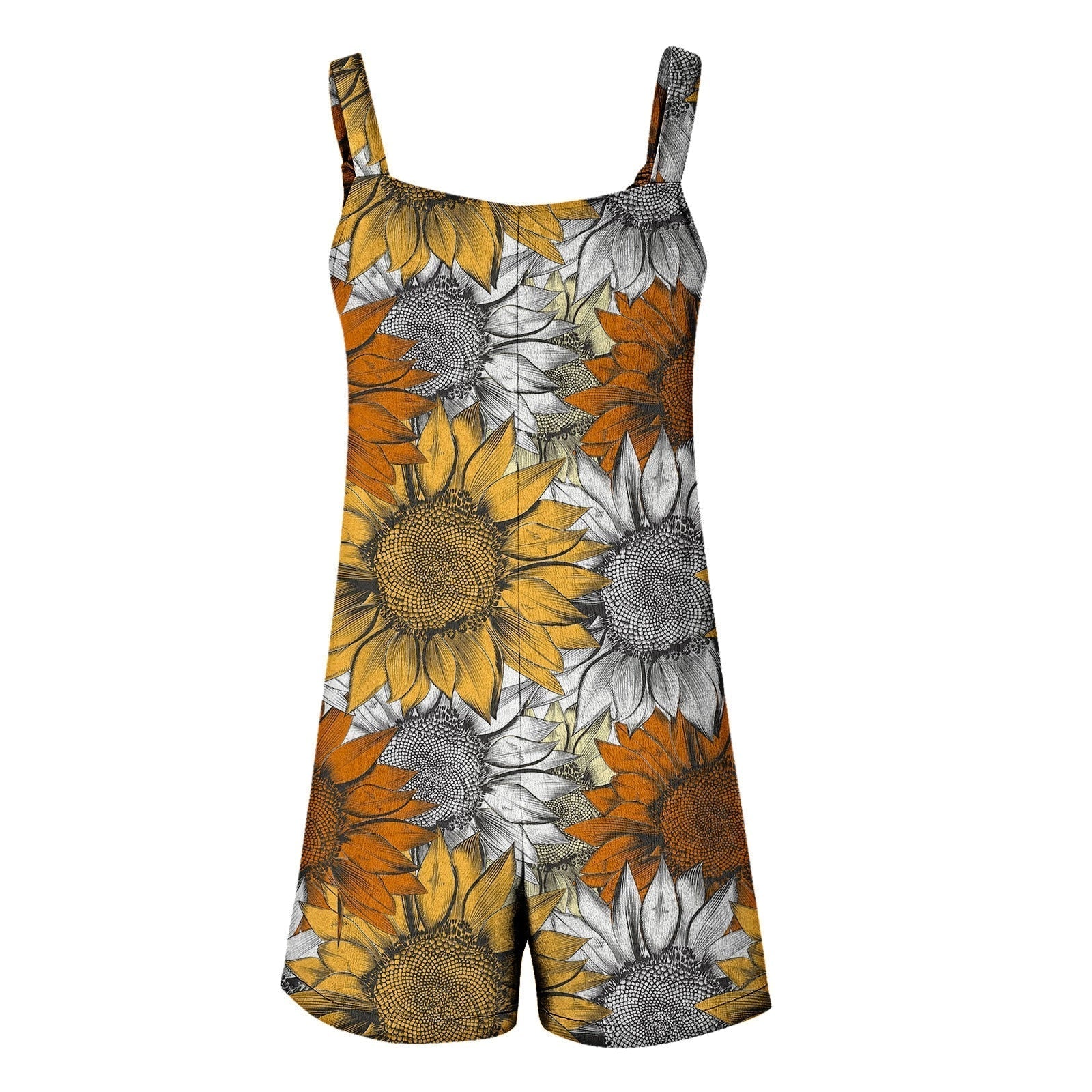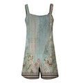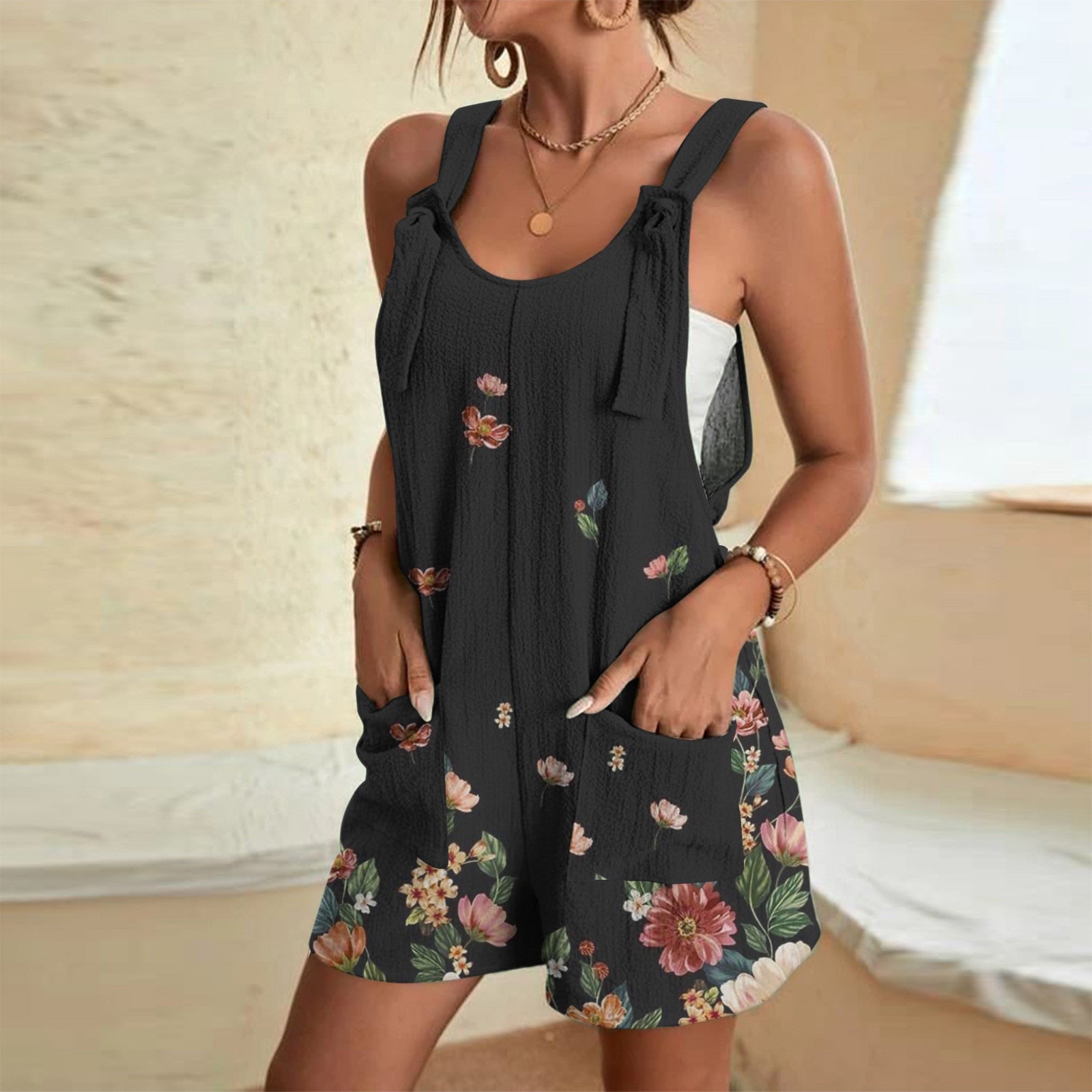Bohemian Floral Printed Short O Neck Sleeveless Elegant Shorts Loose Rompers with Pockets