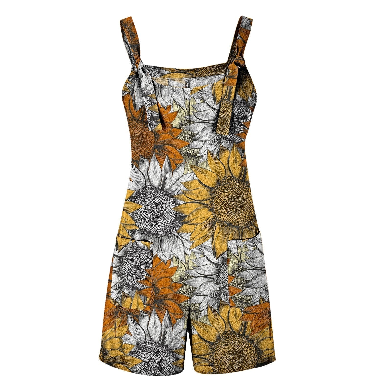 Sale Bohemian Floral Printed Short O Neck Sleeveless Elegant Shorts Loose Rompers with Pockets