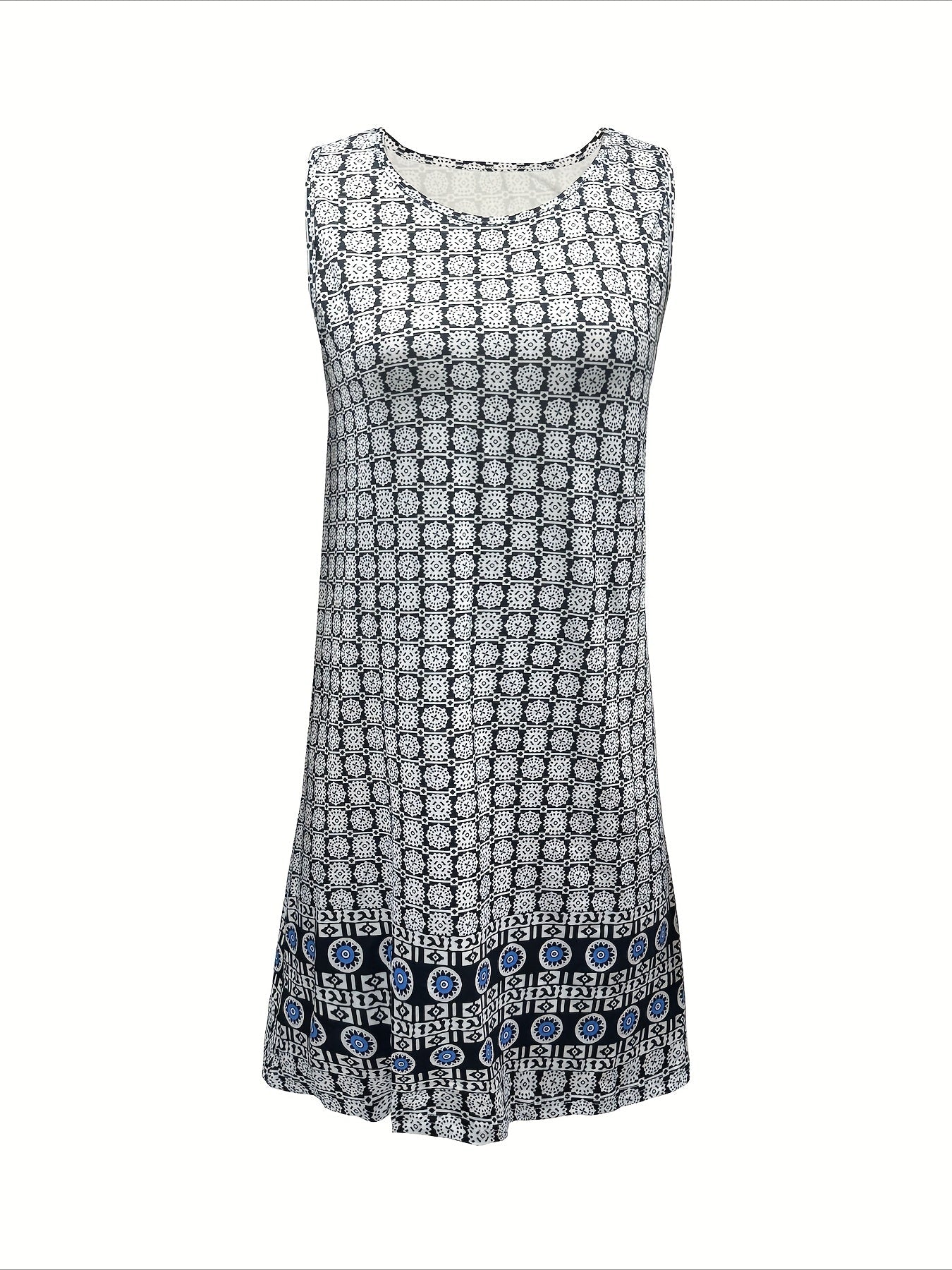 Bohemian Print Crew Neck Sleeveless A-Line Dress