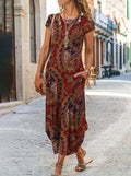 Sale Boho Paisley Print Crew Neck Dress, Casual Short Sleeve Dress