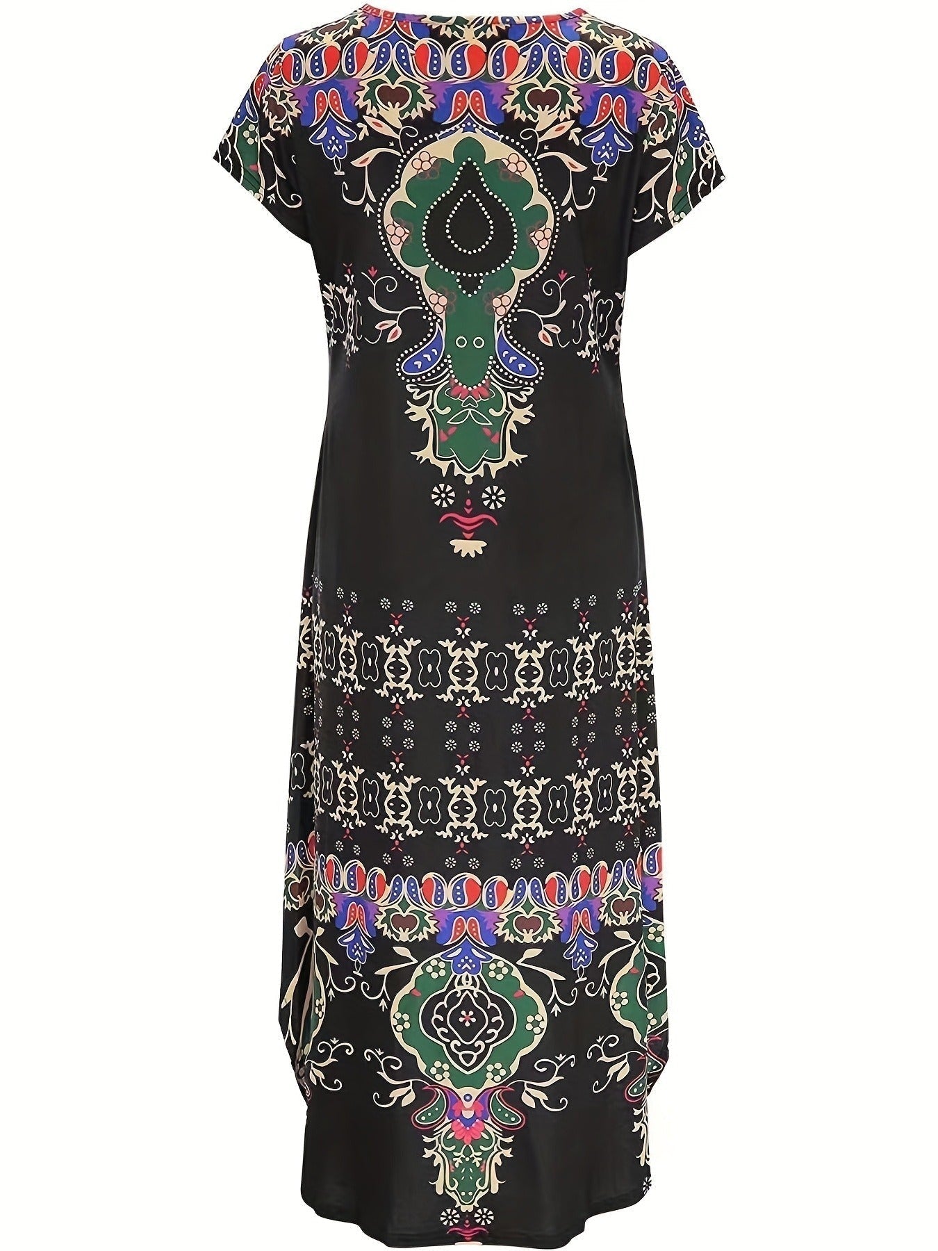 Boho Paisley Print Crew Neck Dress, Casual Short Sleeve Dress