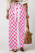 Bonbon 2-Tone Checked Print High Waist Wide Leg Pants
