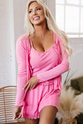 Sale Bonbon Delicate Texture Cropped Cami Shorts and Cardigan 3pcs Lounge Set