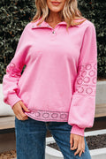 Sale Bonbon Embroidered Flower Patchwork Snap Buttons Pullover Sweatshirt