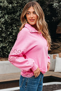 Green LUCKY Aphabet Chenille Embroidered Pullover Sweatshirt