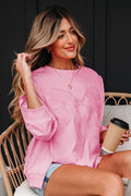 Bonbon Lace Insert Bow Embroidered Exposed Seam Sweatshirt