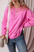 Sale Bonbon Solid Fleece Lined Drop Shoulder Terry Sweatshirt
