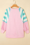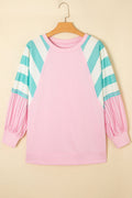 Bonbon Striped Colorblock Patchwork Raglan Pullover Top with Slits