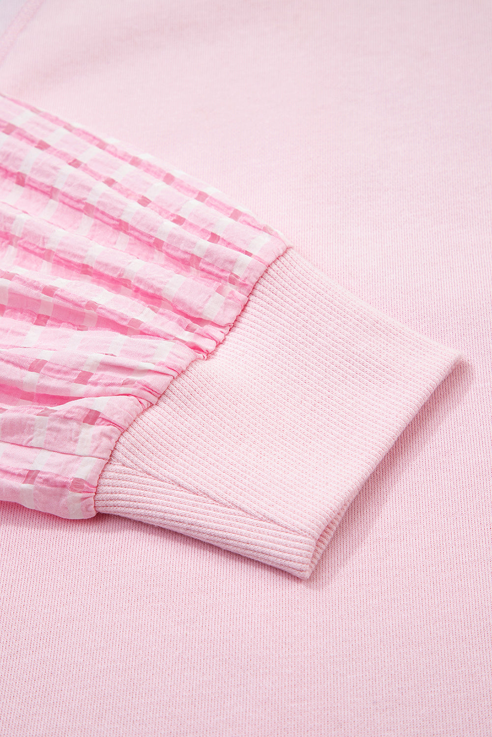Sale Rose Checkered Pattern Mesh Mock Neck Long Sleeve Top