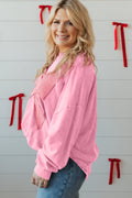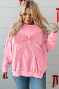 - The mineral wash gives this plus sweatshirt a freedom and vintage vibe.The 3D waffle bowknot adds great feminine to this pink pullover.Oversized fit with drop shoulder design makes it more casual and laid-back.The side slit is a chic and flexible design.