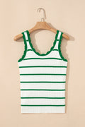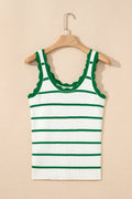 Bright Green Striped Scalloped Edge U Neck Sleeveless Sweater Vest