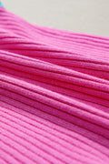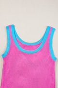 Bright Pink Colorblock Edge Ribbed Knit U Neck Tank Top