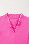Bright Pink Contrast Scallop Trim Layered Short Sleeve V Neck Blouse
