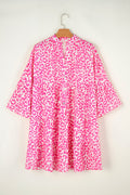 Bright Pink Leopard Printed Long Sleeve Buttoned Front Mini Dress