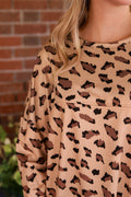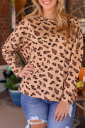 Brown Animal Print Stitching Loose Long Sleeve Top