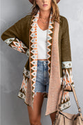 Sale Brown Aztec Print Open Front Knitted Cardigan