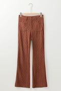 Sale Brown High Waist Square Pockets Corduroy Pants