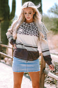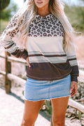 Sale Brown Leopard Color Block Crewneck Long Sleeve Top