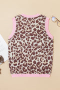 Brown Leopard Pattern Contrast Ribbed Trim Sweater Vest