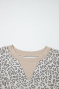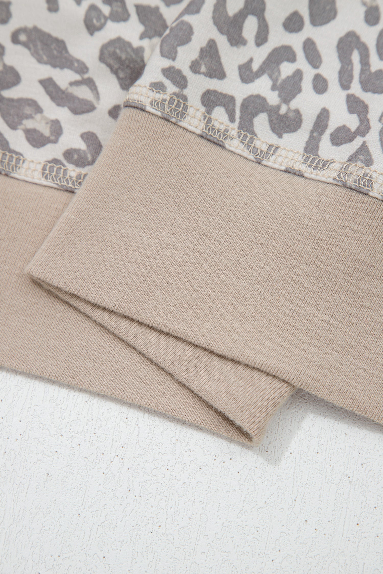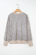 Brown Leopard Print Patchwork Crew Neck Sweatshirt
