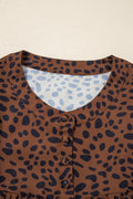 Brown Leopard Print Ruffled Puff Sleeve Blouse