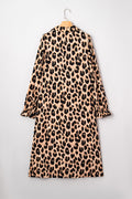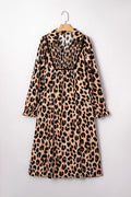 Brown Leopard Print Smocked Detail Flowy Midi Dress