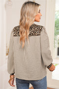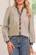 Brown Stripe Leopard Patchwork Long Sleeve Shirt